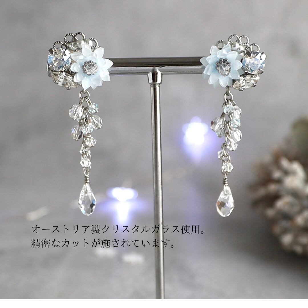 ブルーのワンピースや、普段のお洋服に合わせてみても。動くたびきらりと顔周りを彩ってくれます。